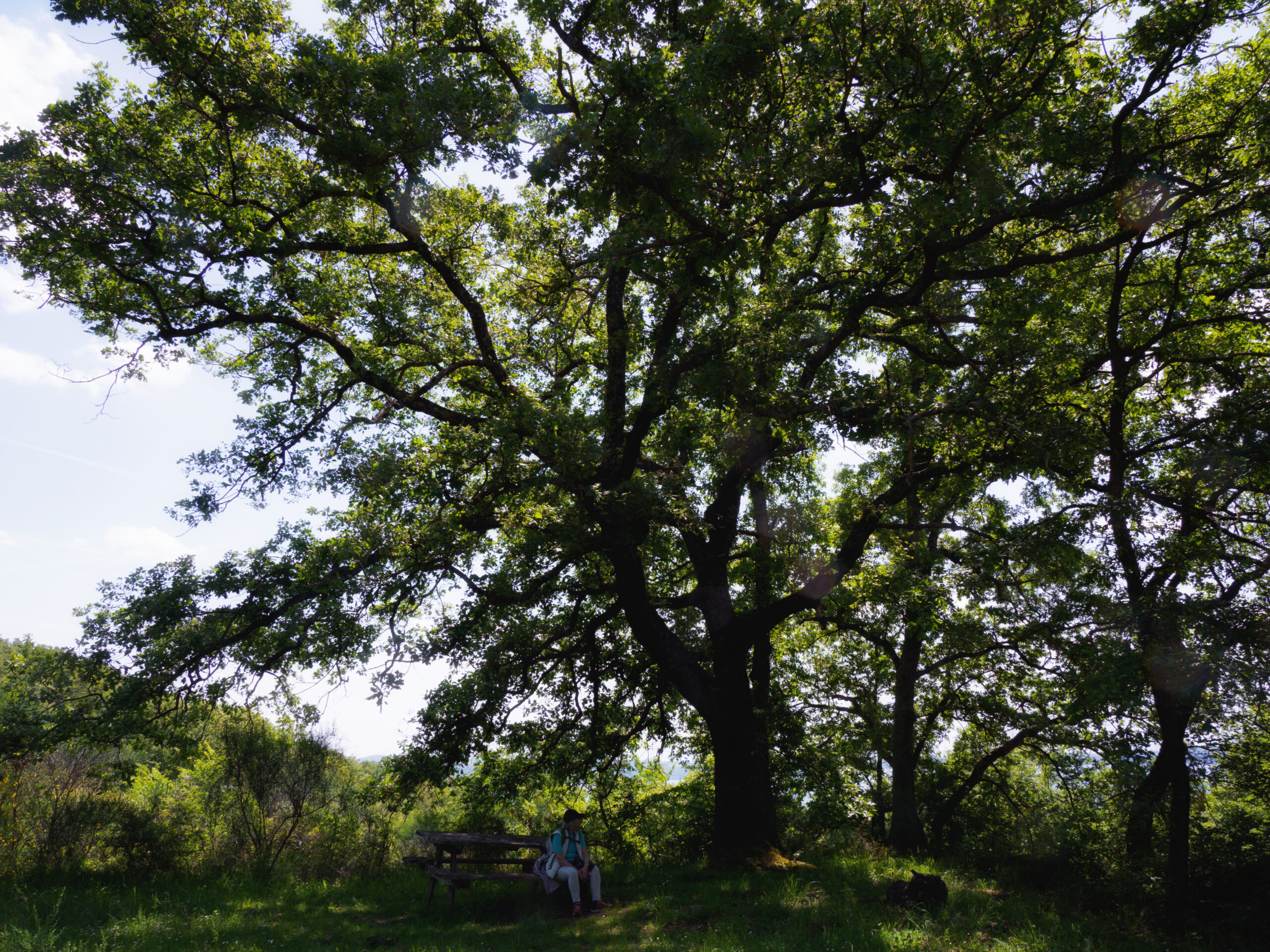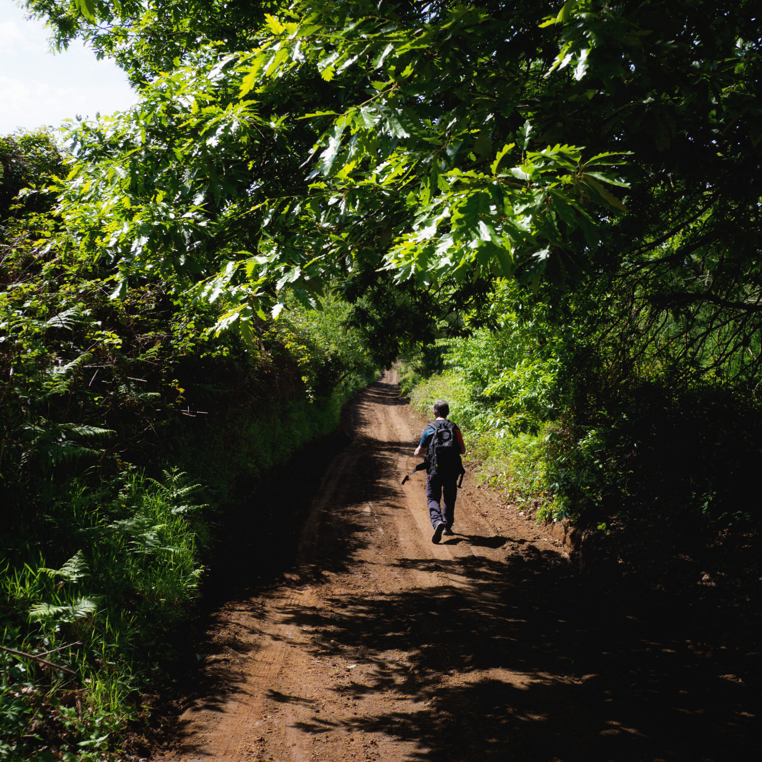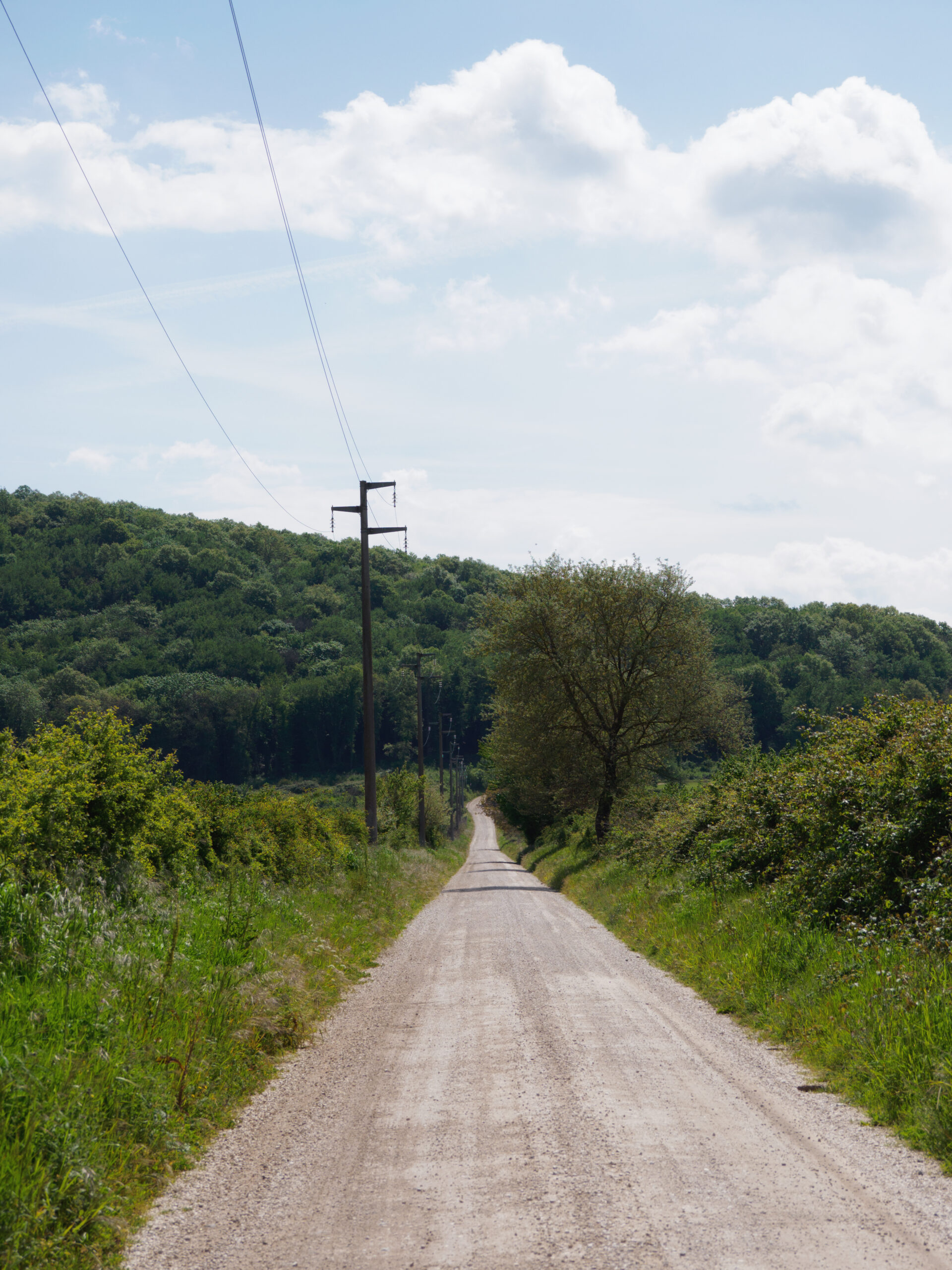 Da Viterbo esistono due varianti per raggiungere Vetralla. Noi abbiamo scelto la via classica, più lunga ma molto più interessante, che passa per San Martino al Cimino. È la tappa più impegnativa del percorso: il dislivello è significativo, soprattutto considerando i chilometri complessivi. Il primo tratto scorre su una strada asfaltata poco trafficata ai margini della periferia residenziale di Viterbo, poi si entra in un bosco fitto che accompagna fino alla vetta del dislivello.